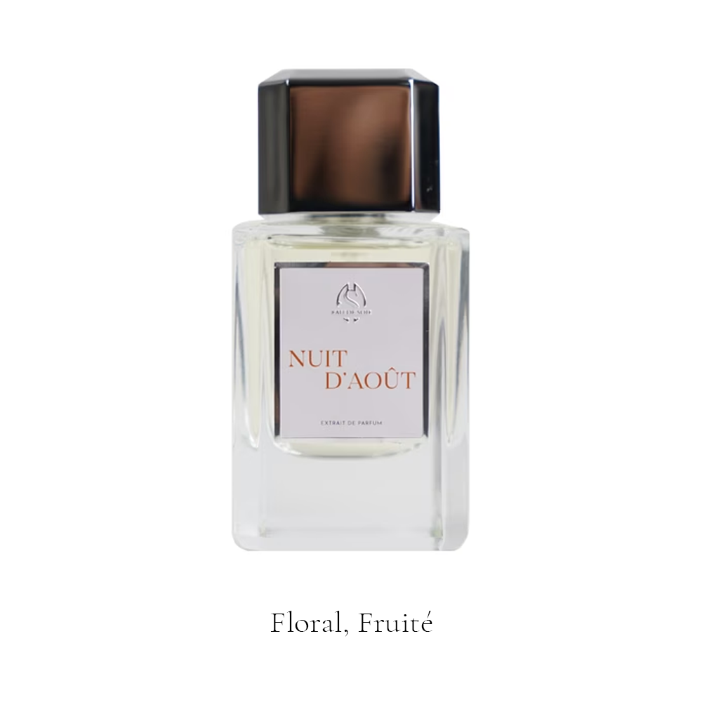 Nuit d’Août évoque une nuit d’été enveloppante, chaude et étoilée. Ce parfum nous transporte dans une atmosphère à la fois apaisante et envoûtante, entre fraîcheur florale et chaleur ambrée, avec une touche de mystère élégante.