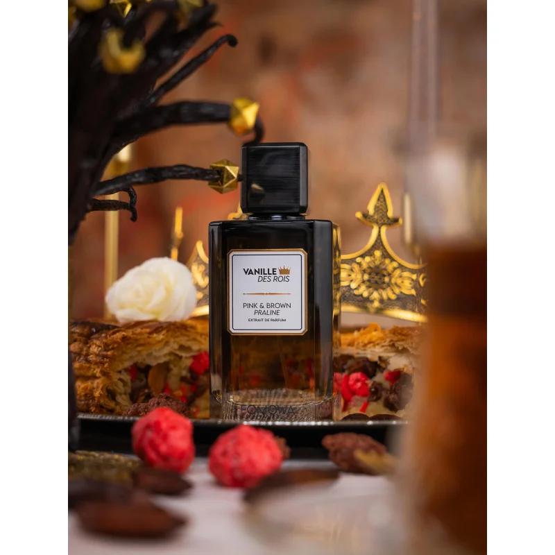 Note de fond : Extrait de Vanille CO₂ des Comores, Abs vanille tahiti, Absolu labdanum, Pink & Brown Praline, Absolu tonka Brésil, HE Patchouli, HE Cèdre Atlas Marocain, Bois ambrés, Vanilline naturelle